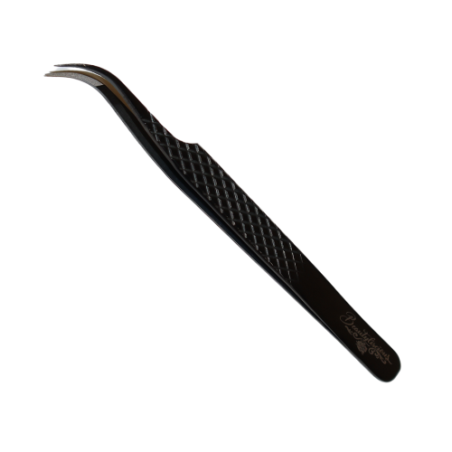 Each of our Luxury Black Plasma line pick up tweezers comes in the option of Diamond Dusted which is a finely blasted inner prong smooth finish or Mega Fiber Grip which has a unique basket weave-like texture imprinted inside the pick up prongs for those who struggle with the grip of traditional style tweezers, this new fiber grip technology gives an overall sweet spot to each tweezer, allowing them to be used with any diameter lashes seamlessly, from .03-.15.